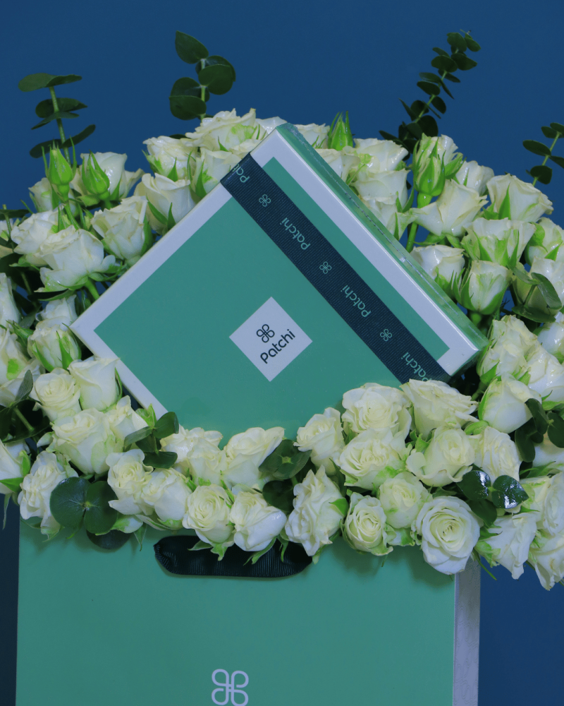 تنسيق فاخر يجمع بين جمال الورود البيبي جوري الطبيعية ولمسة فخامة من تشوكلت باتشي الفاخر. هدية أنيقة تناسب جميع المناسبات السعيدة وتترك أثرًا لا يُنسى لدى من تحب.