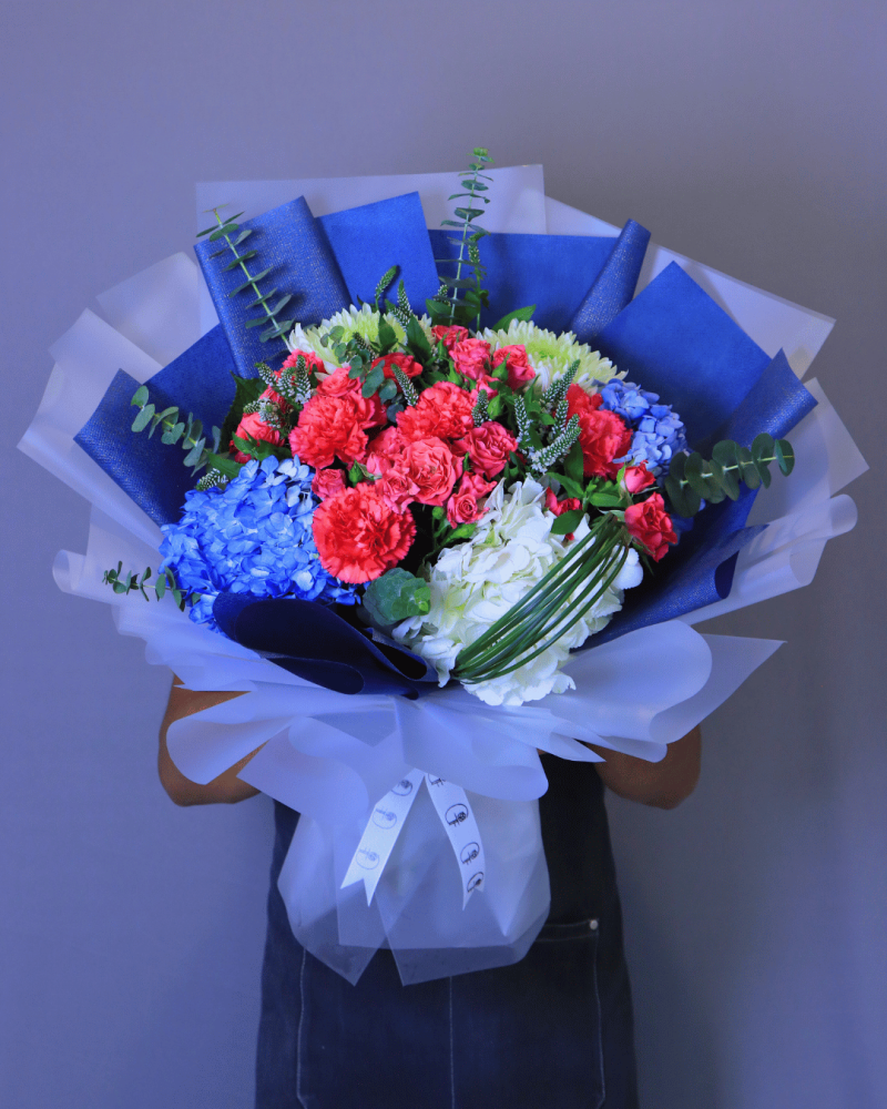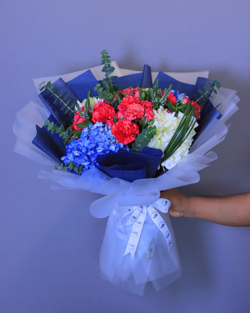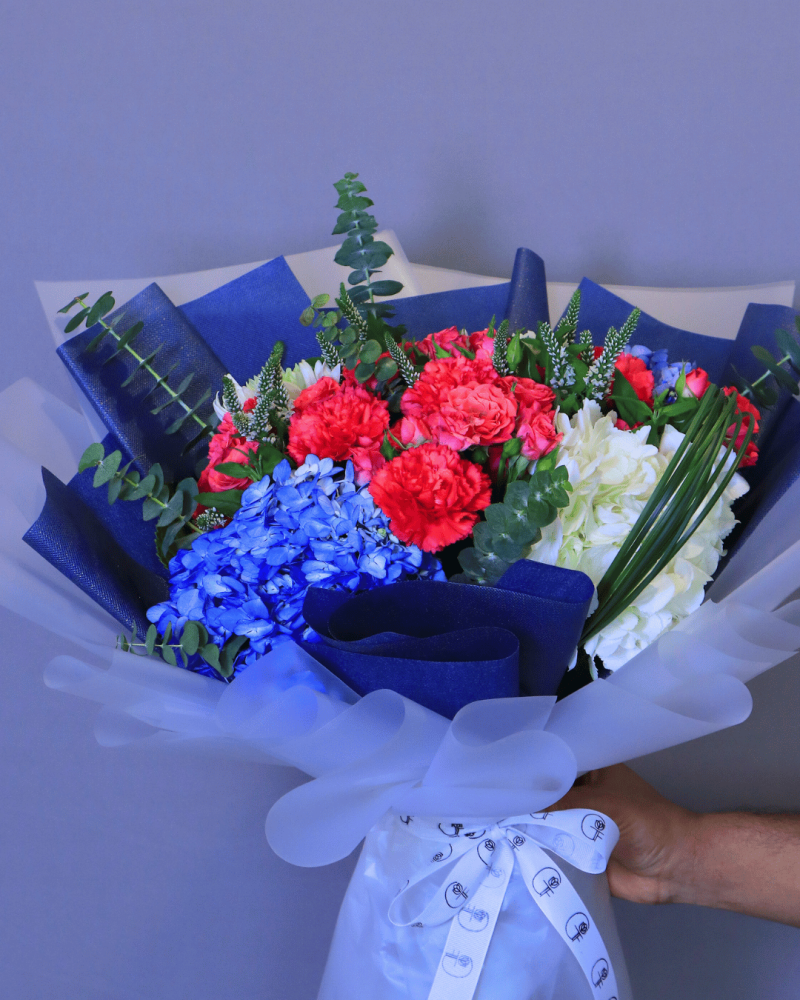 بوكيه مميز يجمع باقة متنوعة من أجمل الزهور الموسمية الطبيعية بألوان متناغمة ولمسات جذابة، ليمنحك شعوراً بالانتعاش ويضفي لمسة من الجمال على أي مناسبة أو ركن في منزلك.