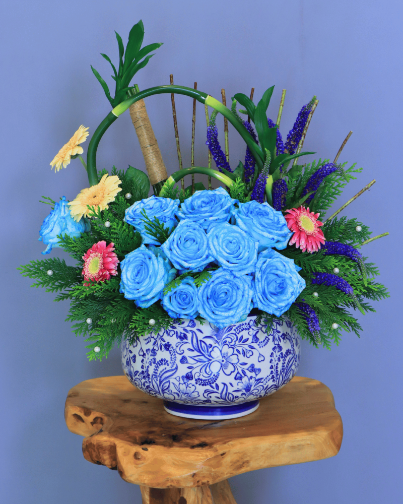 تنسيق أنيق يجمع بين روعة الورود الطبيعية بألوانها الجذابة داخل فازة فاخرة مزخرفة، لتكون قطعة فنية تبهر كل من يراها. خيار مثالي للإهداء في المناسبات المميزة أو للتعبير عن مشاعرك بلمسة راقية.