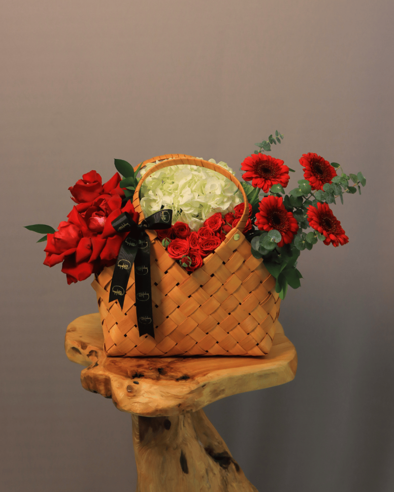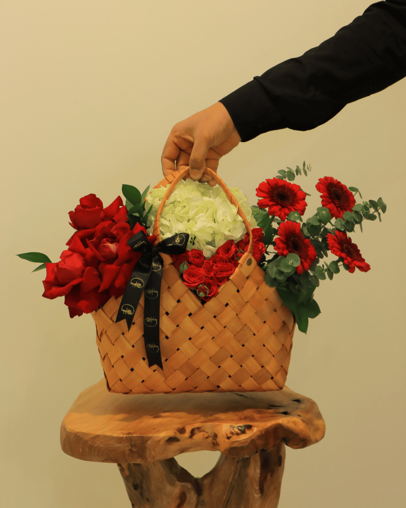 سلة الورود 2 تجمع بين جمال الورد الأحمر الكلاسيكي وأناقة الزهور البيضاء مع لمسة من الأوراق الخضراء الطبيعية. تنسيق فاخر داخل سلة خشبية مميزة يعكس الحب والفخامة، لتكون الهدية المثالية في جميع المناسبات الخاصة.