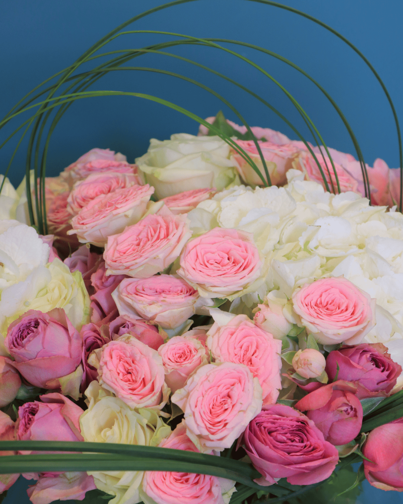 - تنسيق يجمع بين الورود البيضاء والوردية بتناغم أنيق