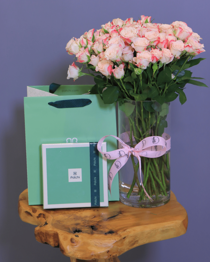 لمسة أنيقة تجمع بين جمال الورد الطبيعي المنسق بعناية داخل فازة شفافة أنيقة، مع علبة شوكلت باتشي الفاخرة. هدية راقية تعبّر عن الذوق الرفيع وتضيف قيمة خاصة لأي مناسبة.